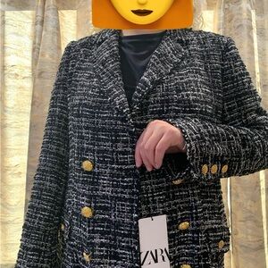 Zara Women's Black and White Tweed Blazer