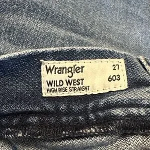 Wrangler Women's Distressed Blue Straight Leg Jeans Wild West 603 High Rise 28 l