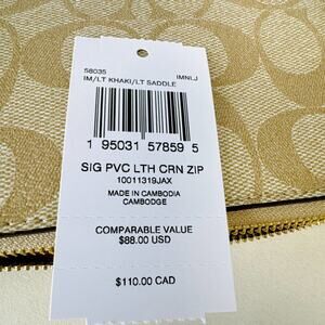 Coach 58035 Corner Zip Wristlet In Signature Canvas IN Lt Khaki