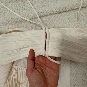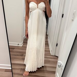 Never worn iconic ALC Moira Dress size 6 in white. I bought this dress for my wedding and had it altered (only the top!) but didn’t end up wearing it. I wanted the dress to be fully strapless so we removed the tie at the neck and added two additional clasps at the back. I also added bra cups! It is absolutely STUNNING. It does have a couple little spots at the bottom of the dress from wearing it for alterations, etc - will easily come out when dry cleaned!