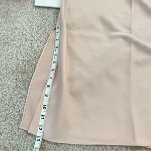 Beautiful midi dress from BHLDN in a pearlescent color. Features one shoulder and side zip. Two side slits. Unlined.