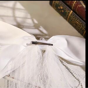 Add a touch of elegance to your look with this beautiful white hair bow featuring a delicate veil. Perfect for special occasions.