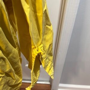 Vibrant yellow shirt jacket with button-up front. Iconic Polo logo on chest. Ideal for layering. 3/4 sleeves slight tear. See picture.
