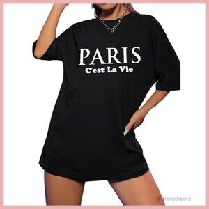 Oversized Paris Graphic Tee Women's Short Sleeve Crewneck Casual Shirt