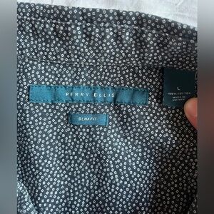 Perry Ellis Men's Blue Gray Patterned Button Up Shirt Size Large Slim Fit