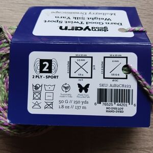 🌿Tags: Darn Good Yarn, Silk, Silk Yarn, Sustainable, Eco-Friendly, Spring, Summer, Yarn, Knitting, Hand Knit, Crochet, Hobbies, Arts & Crafts, Fiber Arts, Purple, Eggplant, Aubergine, Green, Light Green, Grass Green, Lime Green