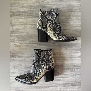 Marc Fisher Snakeskin Print Ankle Boots - Black and White - Women's size 9M