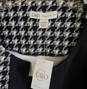 Stylish Cato cardigan with houndstooth pattern. Features black and white design. Perfect for layering.