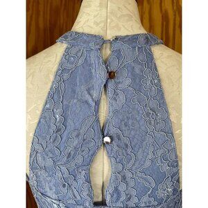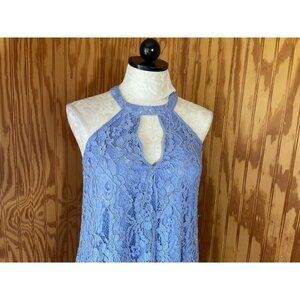 Francesca's Floral Lace Shift Mini Dress Sleeveless Keyhole Fully Lined Blue Size Small