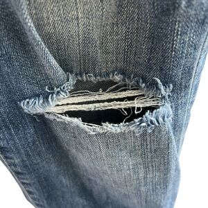 Distressed/ tiny tear on back pocket corner, have to stretch to see (Check last photos)