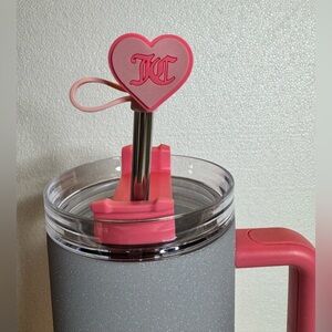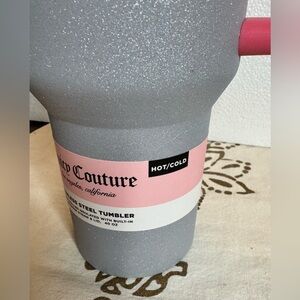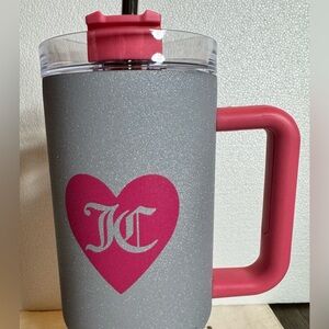 Juicy Couture Sparkly Glitter Gray & Hot Pink Tumbler with Straw Topper 40oz