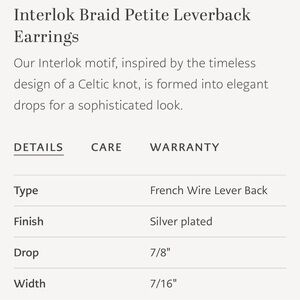 BRIGHTON NWT Interlok Braid Petite Leverback Earrings in Silver • Celtic Knot