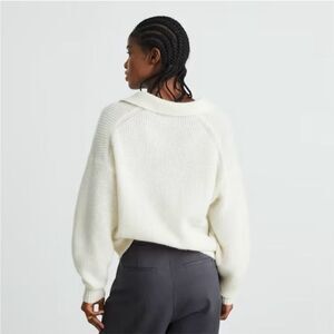 Everlane Alpaca Waffle-Stitch Polo Sweater Ivory Size XXS