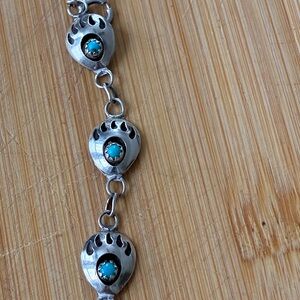 Vintage Sterling Silver and Turquoise Navajo Paw Bracelet