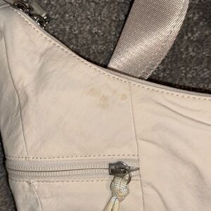 This elegant cream shoulder bag is perfect for any occasion. Its sleek design and neutral color make it a versatile addition to your wardrobe. Good condition, small stain noted in the last photo. I’m sure it would come out in the wash, I just haven’t tried that!