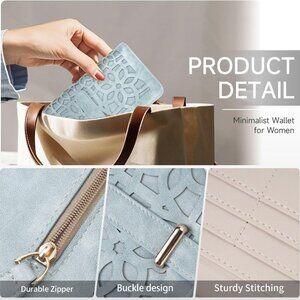 Features: This modern women's wallet is crafted from soft, water-resistant faux leather with a gorgeous floral hollow pattern that really makes a statement. Slim yet spacious, it has 11 card slots, 3 cash compartments, a window for ID or photos, plus an outside zippered pocket — perfect for keeping your essentials organized without bulk.