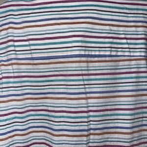 Stylish striped shirt with blue and red tones. Short sleeves and button-down design. Ideal for casual outings.
