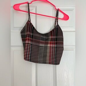 Stylish plaid crop top with a chic design. Perfect for casual outings.