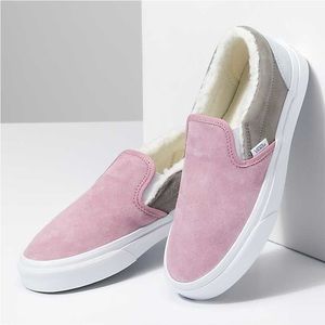 Vans Unisex Pig Suede Shearling Slip On Pink Grey Sneakers/Sz:W:9/M:7.5/NWT