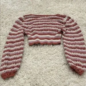 Altar'd State Red and Cream Striped Briella Crop Top Sweater