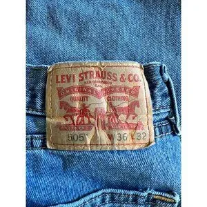 Levi's 505 Jeans Classic Blue Medium Wash Straight Leg Denim Distressed 36 Baggy
