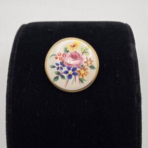 Ibis Aveiro Vintage Brooch Porcelain Floral Dainty Classic Hand Painted Portugal