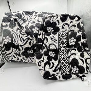 2PC Vera Bradley Black & White Quilted Duffle Bag and Backpack Retired Pattern