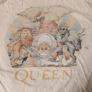 Cream tee with Queen official merch print. Ideal for fans.