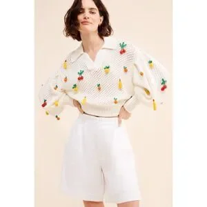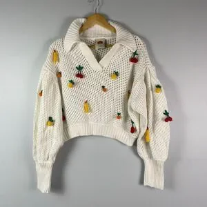 Farm Rio Off-White Crochet 3D Fruit Polo Knit Sweater Top