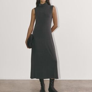 Chic sleeveless maxi dress. High neckline. Perfect for versatile styling.