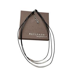Silpada RETIRED N1571 Triple Strand Black Leather “Three Bars” Necklace