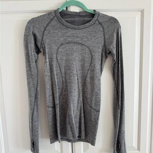Stay comfortable and stylish with this women's gray long sleeve top. Perfect for any casual outing.