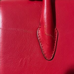 Strathberry Strawberry Nano satchel. Sleek design with signature bar closure. Leather strap (not the chain). Does not come with the dust bag. I have had it stored and not used much but does have some scratches on front (please see pics for close up).