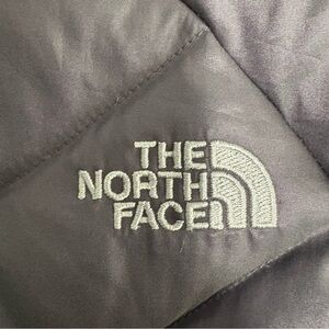 Sleek charcoal puffer vest by The North Face. Ideal for cold weather.