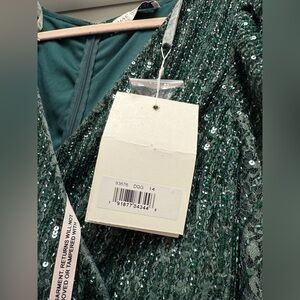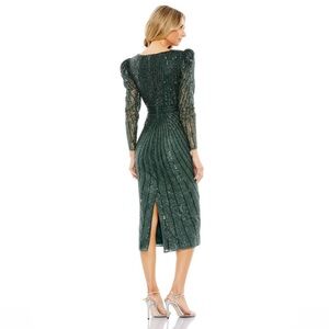 NWT MAC DUGGAL 93676 Green Beaded Lace Long Sleeve Midi Dress