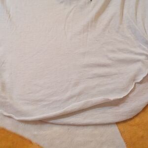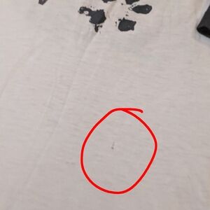 This shirt has been loved and worn over the years, and has some wear to it. The armpits are faded and there is a pinhole on the lower front. See photos for details.