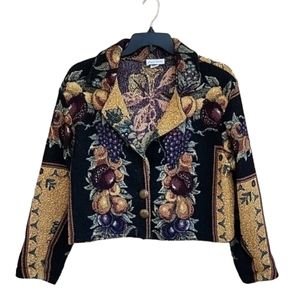 VINTAGE PACO SOLER Thick Brocade Jacket M L Tapestry Tuscan Fruits Crop Blazer