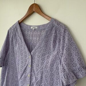 Madewell Eyelet Village Ruffle-Sleeve Shirt in Lilac Purple Xl Extra Large