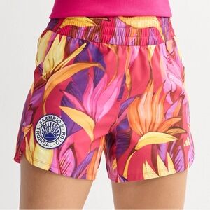 Brand new w tags. Adidas x Farm Rio training shorts are designed for versatile workout sessions - blending vibrant, tropical aesthetics with athletic functionality. Made with 70% recycled materials, reflecting a commitment to sustainability. Size small.
