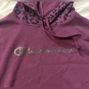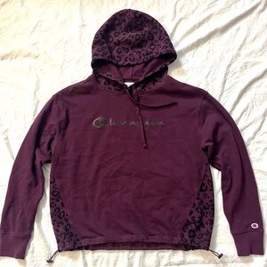 Champion Maroon Hoodie Sweatshirt w Leopard Accents and Adjustable Waist Sz M