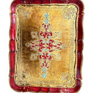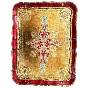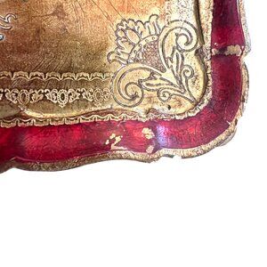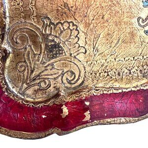 Florentine Italianate Hollywood Regency Baroque Rococo Revival Vintage Gilt Ornate Tray Red and Gold Decor Old World Decor Decorative Tray Old World Charm vintage florentine tray giltwood tray italian style tray hand painted tray gold wood tray european decor old world decor vanity tray decorative serving tray ornate tray classic home decor layered decor vintage home accent traditional decor eclectic decor romantic interiors Anthropologie style