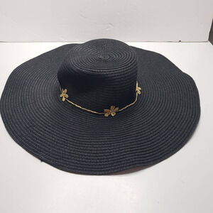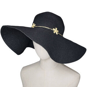 Black Floppy Hat Woven Raffia Flower Band OS #1