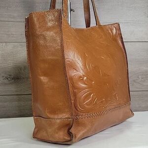 Patricia Nash Toscano Tooled Tan Brown Italian Leather Tote Bag