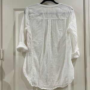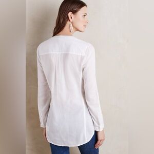 White pintucked button down tunic, made by Maeve and sold by Anthropologie in excellent condition. 100% cotton, size 10 and no damage or defects. Makes an excellent layering piece under sweaters, jackets, and blazers.