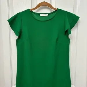 Ces Femme Green Shift Dress | Women’s Small | Flutter Sleeve Sheath