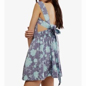 Free People Meet Me In Maui Floral Mini Dress Blue Teal Grey Purple Storm Tie Back NWT Ocean Combo