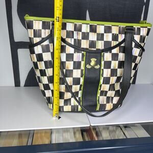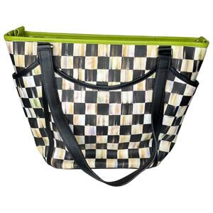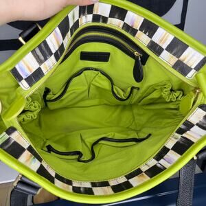 MacKenzie Childs Courtly Check Chartreuse Black Leather Diaper Bag Tote