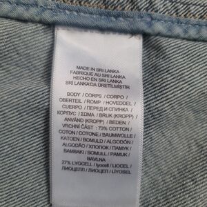 Material: 73% cotton, 27% lyocell. This is a really soft, comfortable denim.
