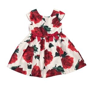 BEAUTIFUL Dressed up by Gymboree floral kids dress with vibrant red roses. Features cute bow accents. Cap sleeves and two button back design for easy dressing. Fully lined interior. Used for pictures with Santa that came out so cute!