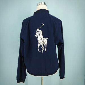 Polo Ralph Lauren Size Medium M Navy Blue Performance US Open Large Polo Logo Full Zip Long Sleeve Unlined Knit Jacket